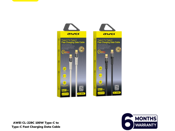 AWEI CL-229C 100W Type-C to Type-C Fast Charging Data Cable – PD 5A Super Fast Charger Cable | Best Price in Bangladesh