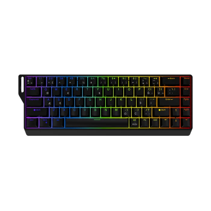 • Status Indicators: Red (Mic Mute) / Blue (Speaker Active)